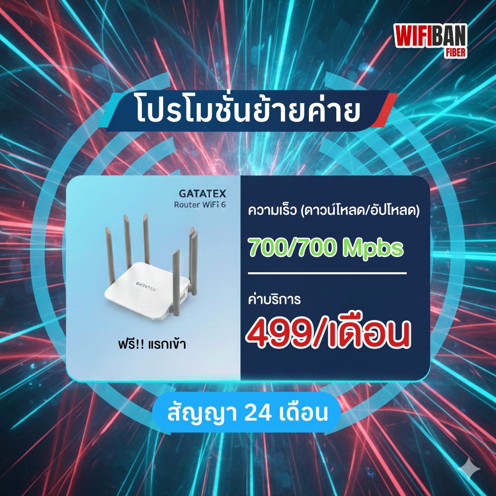 โปรโมชั่นเน็ตบ้านทรู ราคาพิเศษ! เริ่มต้นเพียง 499 บาท สัญญาณแรงทั่วไทย ด้วยเทคโนโลยี Gigatex Fiber แท้ 100% ฟรีค่าติดตั้งและอุปกรณ์ Router WiFi 6 ล่าสุด สมัครง่าย อนุมัติไว พร้อมดูแลโดยทีมช่างมืออาชีพ 24 ชม. เลือกความคุ้มค่า เลือก TrueFiberInternet